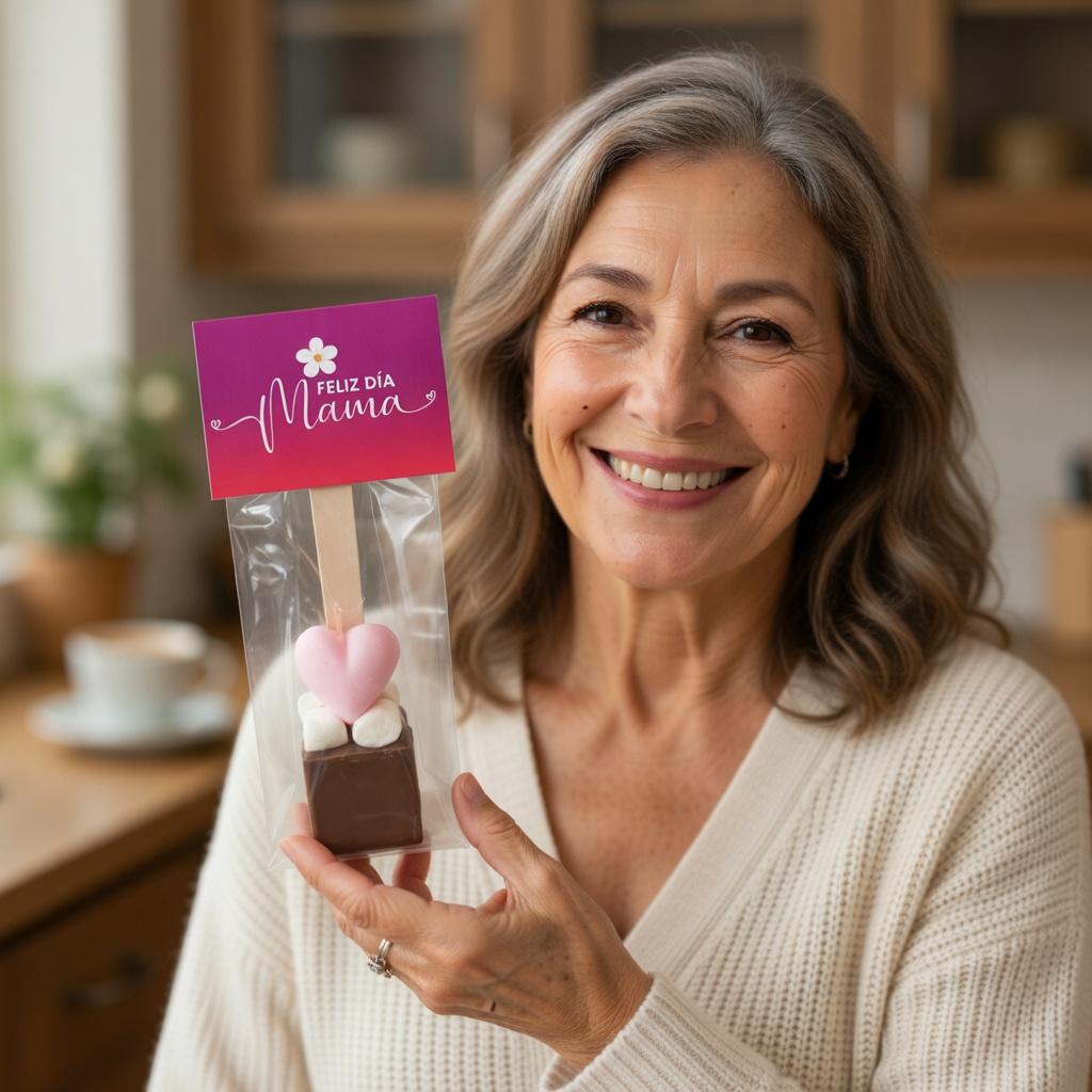 16 cm de alto, disponible en versión Semi amargo 55% y Leche, perfecto para sumergir en leche o café.